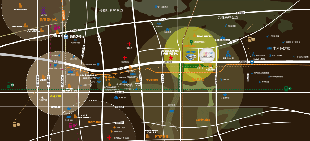3️⃣武汉火车站(地铁4号线)→洪山广场站(地铁2号线) → 光谷火车站(地铁11号线)→中国光谷科技会展中心(光谷六路地铁站C2出口)